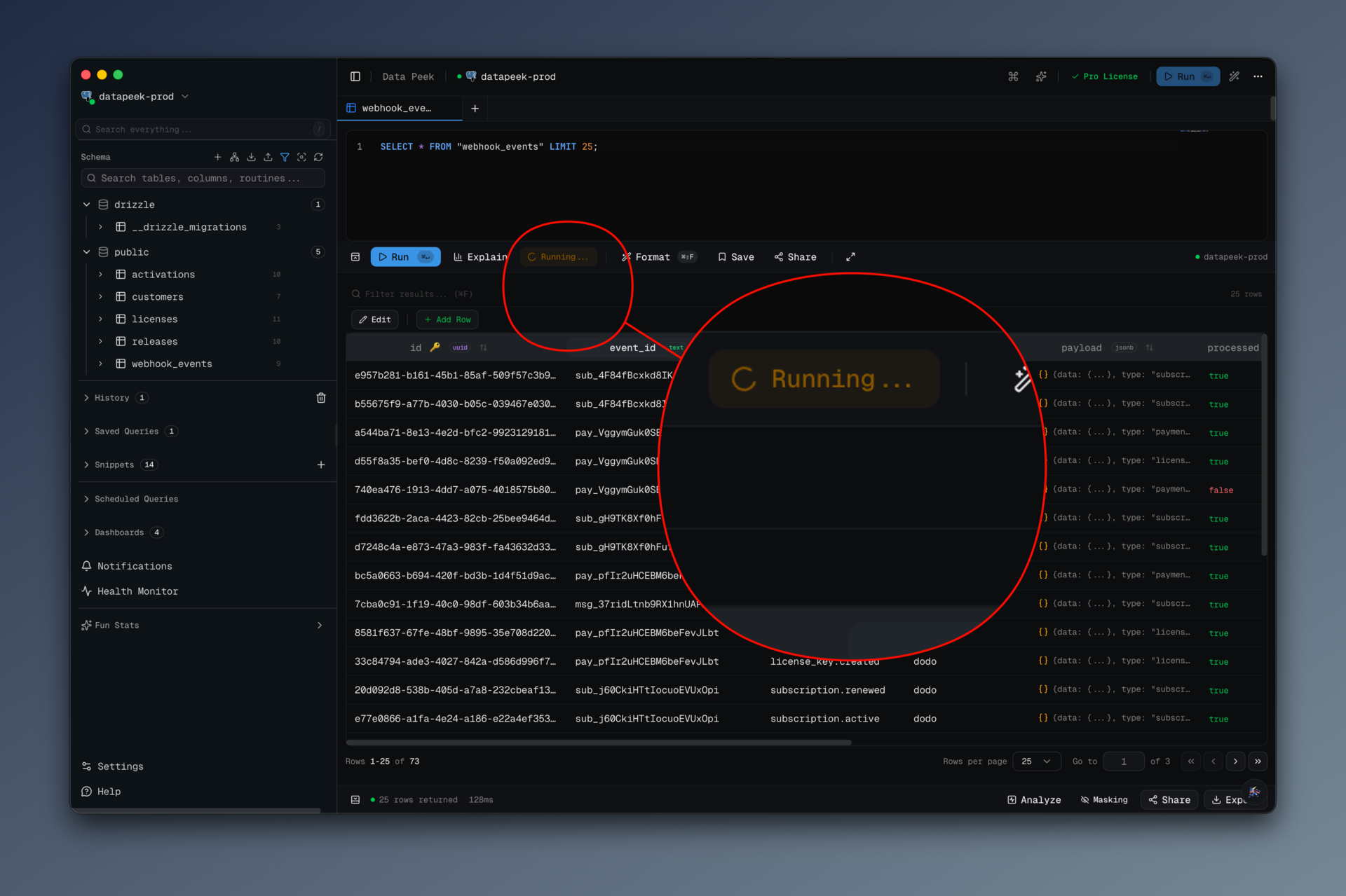 data-peek has a Benchmark button. Click it, pick how many runs, wait, read the percentiles. That is the whole interaction.